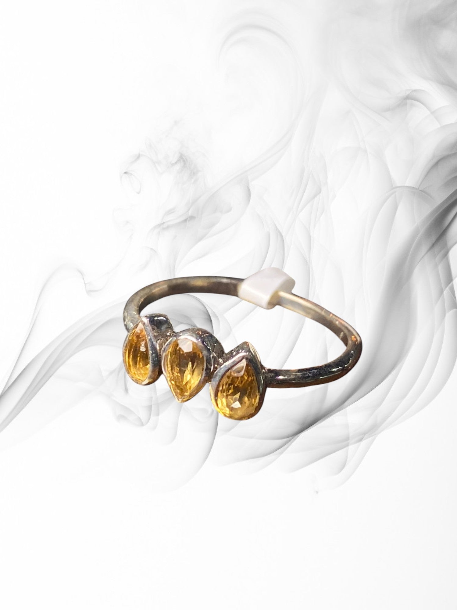 Triple Teardrop Citrine, Garnet, Peridot Sterling Silver Ring